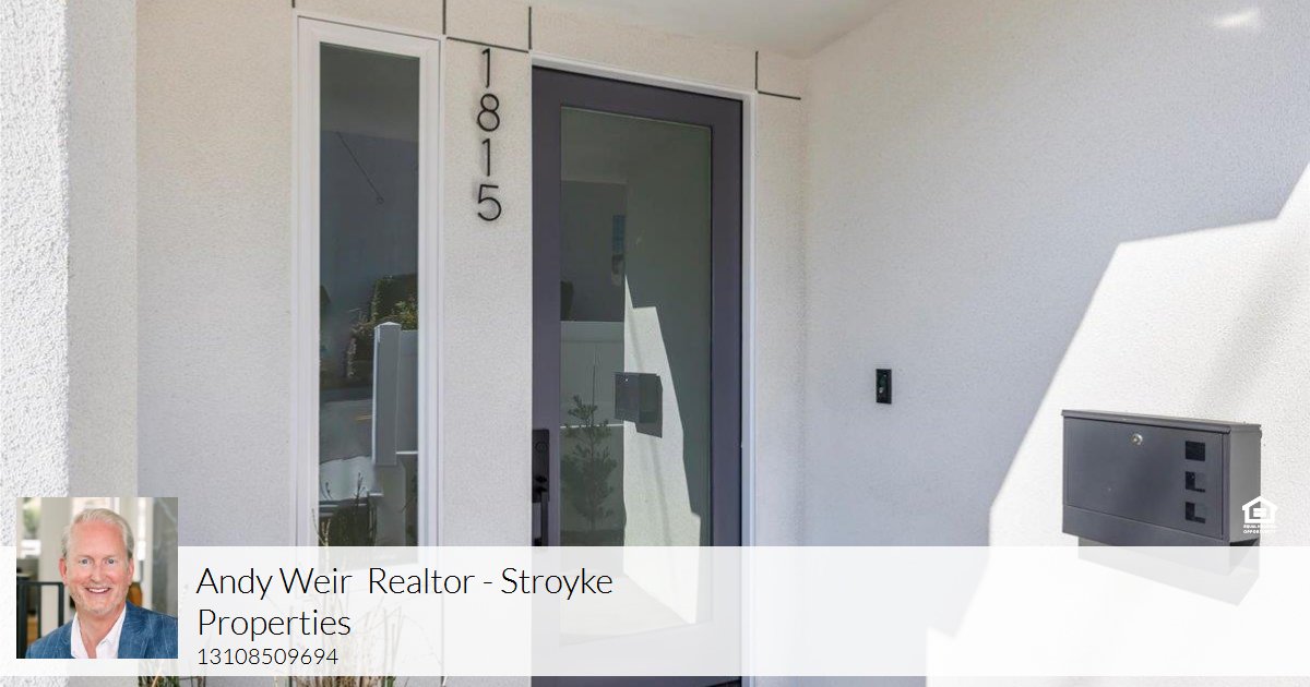 This corner lot, new construction townhouse is the rear unit of a 3-on-a-lot development by renowned builder E&S Prime Builders, who has developed quality residential product in Redondo Beach for over 30 years. This is a premium location. So close to both Manhattan Beach and Hermosa Beach, this property is just a block from charming Andrews Park and two blocks to the shops and restaurants along Artesia. The garage and front entrance face Flagler and displays a soft contemporary architectural style. 1815 Flagler offers 4 bedrooms, 5 baths plus a mezzanine/loft level with wet bar and rooftop deck. When you enter the home, the first level features 2 en suite bedrooms with access to a backyard patio both from a common area as well as one of the bedroom suites. On the second level, the soaring, two-story ceilings provide a wonderful open feeling, washing natural light over the expansive living room with sliders to an oversized outdoor deck – large enough for outdoor barbecuing, dining and entertaining. Next to the the living room is the kitchen which offers stylish quartz counter tops and a large island with storage and breakfast bar seating. Featuring a SMEG gas range and cabinet-front dishwasher along with an LG stainless refrigerator, you will think only “high end” when you see this kitchen. There is a dining area off the kitchen with a stylish chandelier to illuminate your gatherings. Also on this level is the primary bedroom suite with vaulted cielings, built-in his-and-hers closet systems, and a fireplace. The primary bath is tastefully designed with a free standing tub, dual vanity, separate water closet, a walk-in shower with a river rock floor and a rain shower feature. Is another en suite bedroom and powder room. Take the open staircase up to the mezzanine level to find another living space overlooking the living room below, a wet bar and a door leading to your rooftop deck with sweeping views of PV and the surrounding neighborhood. The home is pre-wired for solar and has central air-conditioning and central vacuum. Laundry room is located in the attached 2 car garage with built in storage. With two additional spaces on the driveway there is plenty of off-street parking, rounding out this special offering.